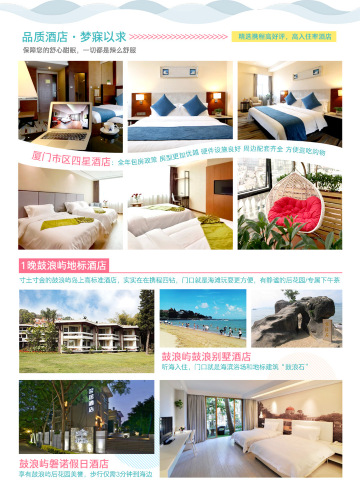 两条线路均为精华纯玩行程,区别为:A线3晚市区4星+1晚鼓浪屿,B线3晚市区4星+1晚国际五星酒店!