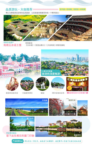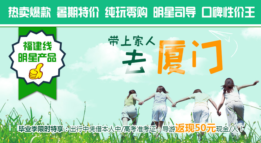 备注:鼓浪屿岛上为步行商业街,岛上所有商店均不算旅行社安排的购物店。